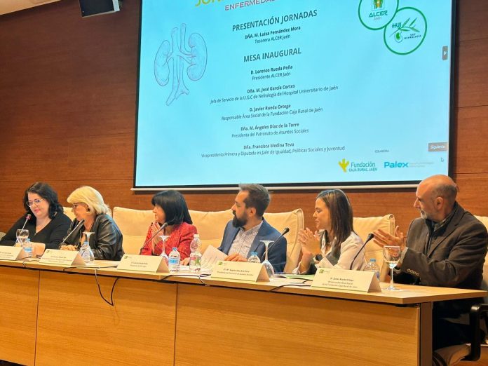 El 8 de febrero de 2025 se celebró en la ciudad de Jaén la Jornada Provincial “Enfermedades Renales”, organizada por la Asociación para la Lucha Contra las Enfermedades Renales de la provincia, ALCER JAÉN, con la colaboración de la Unidad de Nefrología del Hospital Universitario de Jaén. El lugar elegido fue el Salón Guadalbullón de IFEJA con comienzo a las 10 horas de la mañana y cuya mesa inaugural fue presidida por D. Lorenzo Rueda Peña, Presidente de ALCER JAÉN a quien le acompañara la Vicepresidenta Primera y Diputada de Igualdad, Políticas Sociales y Juventud en Jaén, Dña. Francisca Medina; la Presidenta del Patronato de Asuntos Sociales del Excmo. Ayuntamiento de Jaén, M. Ángeles Díaz de la Torre; el Responsable del Área Social de la Fundación Caja Rural de Jaén, D. Javier Rueda Ortega; la Jefa de Servicio de la U.G.C. de Nefrología del Hospital Universitario de Jaén, Dña. M. José García Cortes.